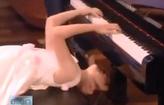 | 九岁女孩钢琴上表演“杂技” |