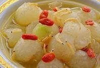 瑶柱虾米冬瓜汤 主料:冬瓜(750克)、瑶柱(50克)、虾米(50克)、瘦肉(150克)辅料:冬菇(50克)做法:1、瑶柱虾米洗净,用清水浸泡一下。2、瘦肉和水发冬菇切小粒。…… |