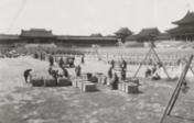 | 故宮文物瓷器裝箱前集中情形工人正在搬出文物第三批古物南迁木箱装运情况这是一个关于承载的故事:故宫文物承载了中华五千年文明;飞驰的列车、远航的江轮、山路上的汽车、…… |