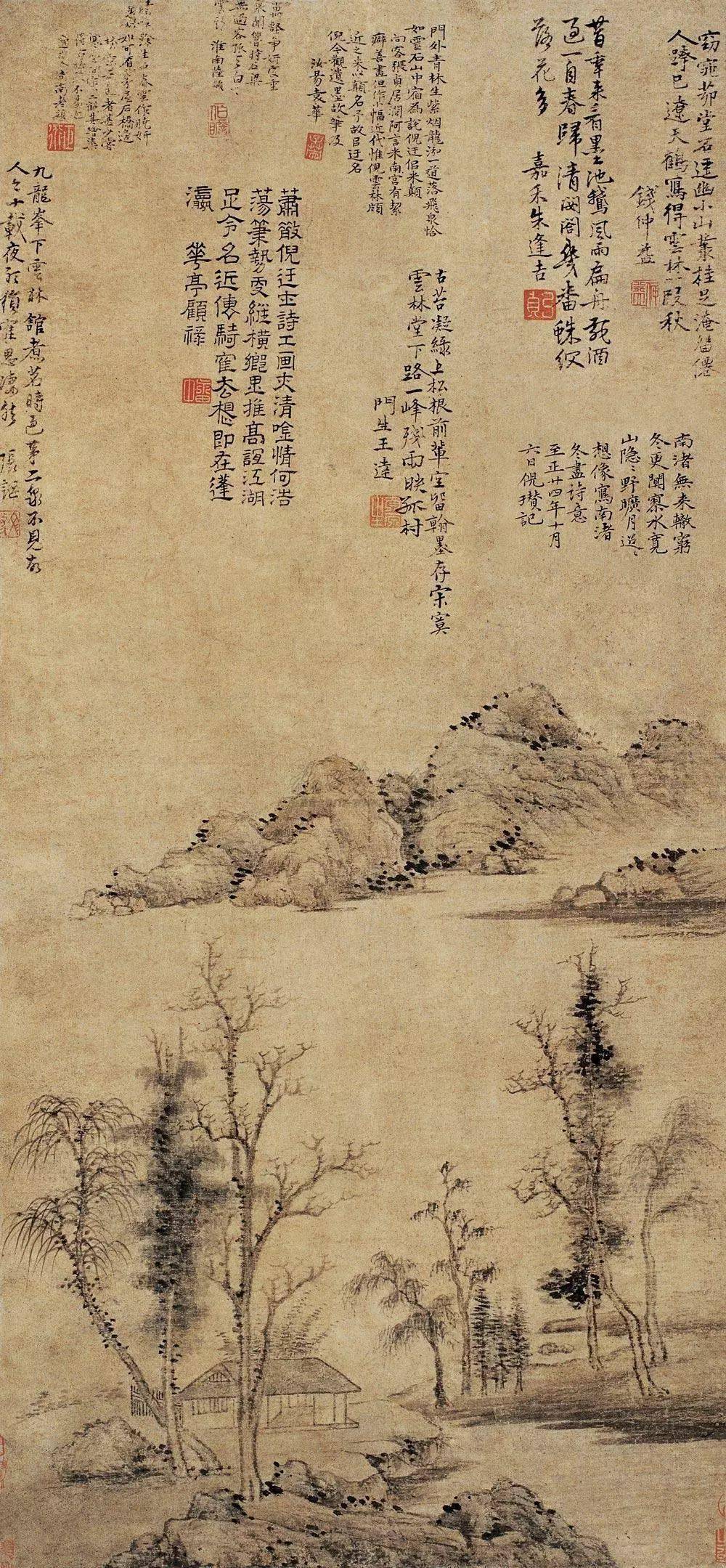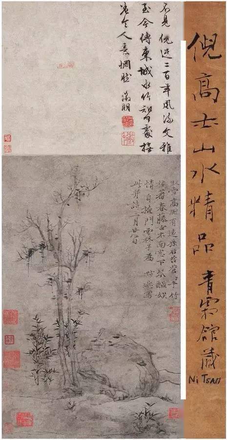 倪瓒 《水竹居图》 53.6 x 27.7cm 国家博物馆藏 清康熙年间以史才著称的倪灿, 说过一句话: “每叹世人辄学云林, 不知引镜自窥,何以为貌!” 话虽刺耳,但细细回味, 却也道出了一个事实: 倪云林不可复制。