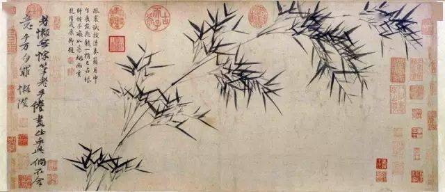 倪瓒 竹枝图卷 故宫博物院藏 若是许多画作放在一起, 倪瓒的画绝不会是最抢眼的那一幅。 但如果你细细品味其笔简意远, 你一定会记住那疏林坡岸, 没有一丝云翳, 也不见一痕鸟影的倪瓒, 笔墨都素净得几乎透明。