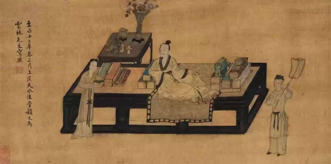 赵元《倪瓒写照》1352年作 这或许与他的家族经历有关, 倪瓒是富贵过的, 他的祖父是本乡大地主, 长兄是当时道教的上层人物。 但他的长兄病故之后, 逐渐家道中落,归于贫穷。