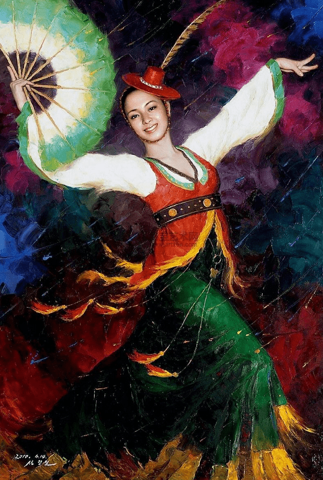 油画《扇子舞》 崔润哲 作