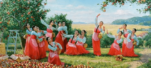 油画《苹果芳香的季节》 朴丹必 作
