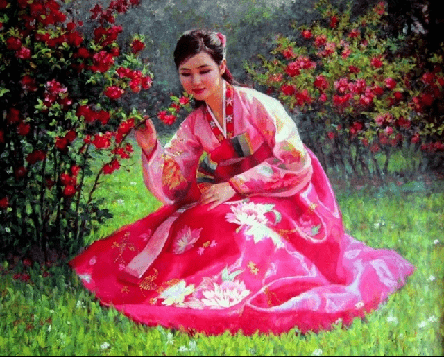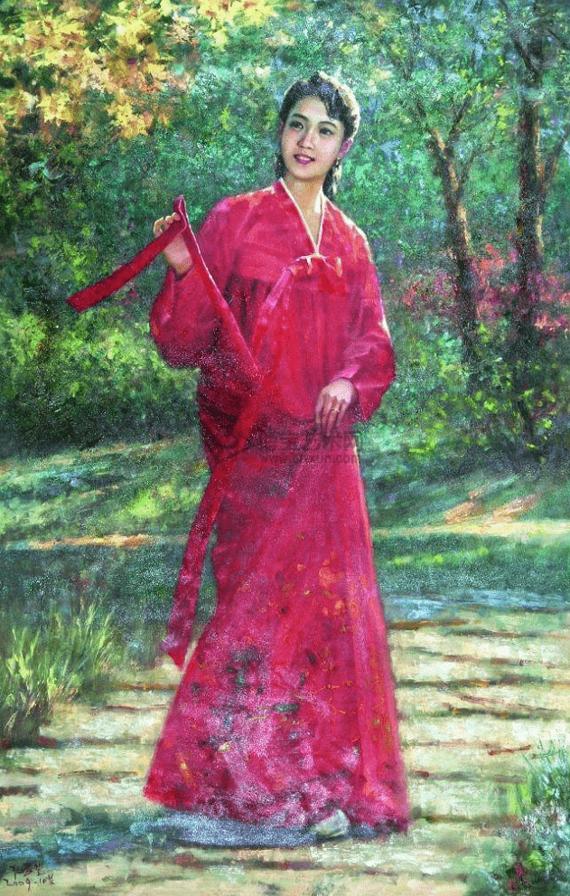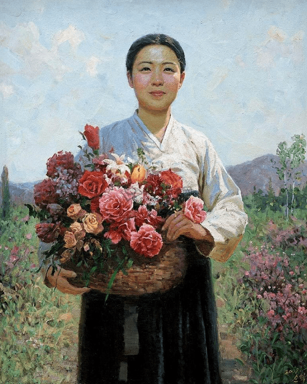 油画《卖花姑娘》 赵顺学 作 从朝鲜精美油画,欣赏美丽的朝鲜姑娘!让我们静静地欣赏这些精选的、全部由朝-鲜-功-勋或著名画家所创作的代表性人物油画佳作,在欣赏这些优美油画艺术品的面前,我们每个人都将变得纯净和高雅。