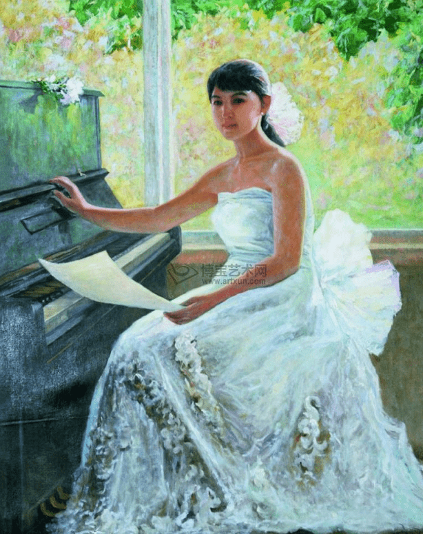 油画《钢琴演奏者》 金周革 作