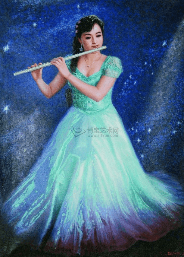 油画《吹笛演员》 申永生 作