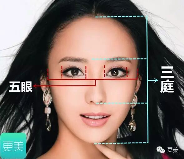 五眼,把人脸纵向分为五个等份,以一个眼睛长度为一等份,两眼间距为一等分,眼睛到太阳穴也是一个等分。