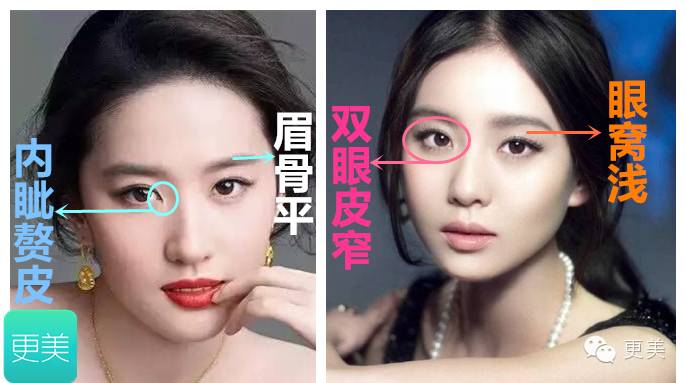 如何变成混血大眼呢? 1.眉骨低 2.内眦赘皮 3.欧式平行双