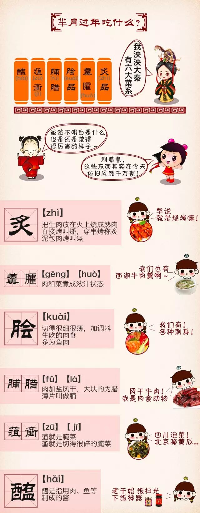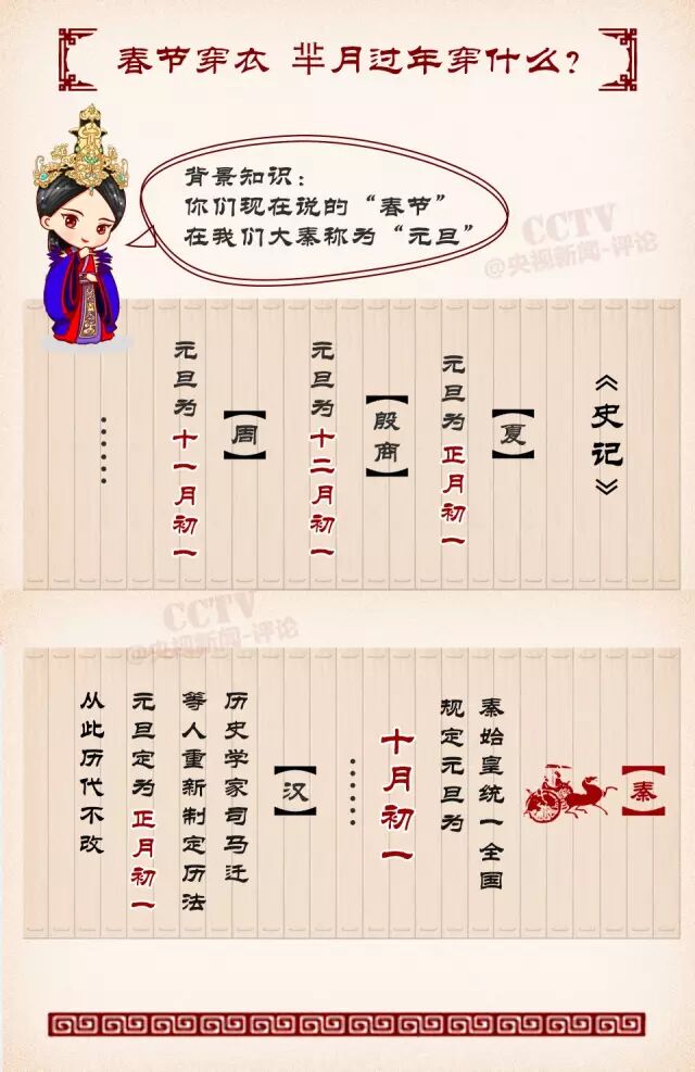 你知道中国人是从什么时候开始过春节的吗?2015年,《羋月传》火了,想知道羋月过年都吃什么、穿什么、玩什么?跟着小编一起穿越回秦国吧—— 寒冬腊月,除夕飘雪,如果你以为,身处战国时期的羋月过年的时候穿的是厚棉袄大貂皮,那就错啦!因为在秦国,春节并不在正月—— 知道了吧,在秦国,春节正是瓜果飘香的十月! 如今过年,南方有汤圆、北方有饺子。不过在先秦时期,这些东西通通都还没有出现,人们还吃不到饺子、面条,但绝非没有口福! 秦人的新年不在天寒地冻、大雪纷纷的冬季,在秋天过春节是一种怎样的体验?其实,春节最初的雏形,主要源于年头岁末祭神、祭祖活动,说白了,在秦朝,过年的活动,大概就是两件事—— 羋月未嫁时,在楚国曾经代替羋姝领跳少司命祭舞,这样的活动就是在重大节日才有的! 看到这里,大家一定明白了,在羋月生活的年代,春节一半是庆丰收,一半是祭神驱鬼,并不一定就是喜庆的日子。 直到汉代,才出现社会较为稳定、经济日趋繁荣的局面,百姓们有了休养生息的机会,为岁终的庆祝和新岁的祈福创造了条件。