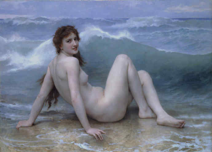 布格罗是世界上最知名的绘画大师之一。“片头”的第三张就推出布格罗的这幅<波浪>,起因不是因为这幅画很著名或其他原因,是因为著名诗人文榕女士的散文诗已经给予这幅画很好地解析。文榕女士用汉字堆砌出的炫美拓展加深了这幅油画的内涵!