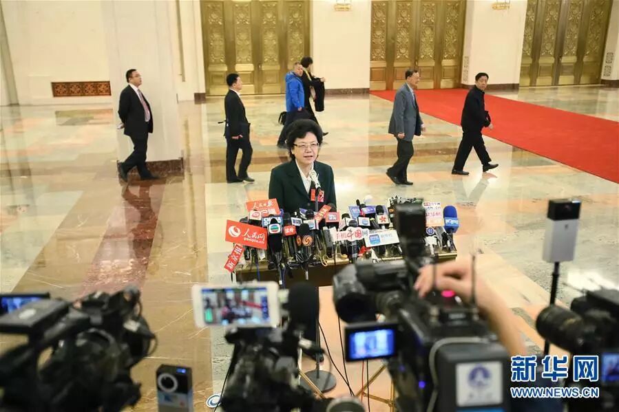 3月5日,第十二届全国人民代表大会第四次会议在北京人民大会堂开幕。这是开幕会后,国家卫生和计划生育委员会主任李斌接受媒体采访。新华社记者 张铖 摄