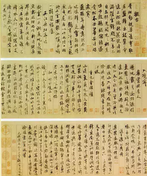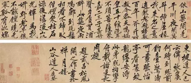 《松风阁诗帖》是黄庭坚七言诗作并行书,墨迹纸本,纵32.8厘米 横219.2厘米,全文计29行,153字。台北故宫博物院藏。